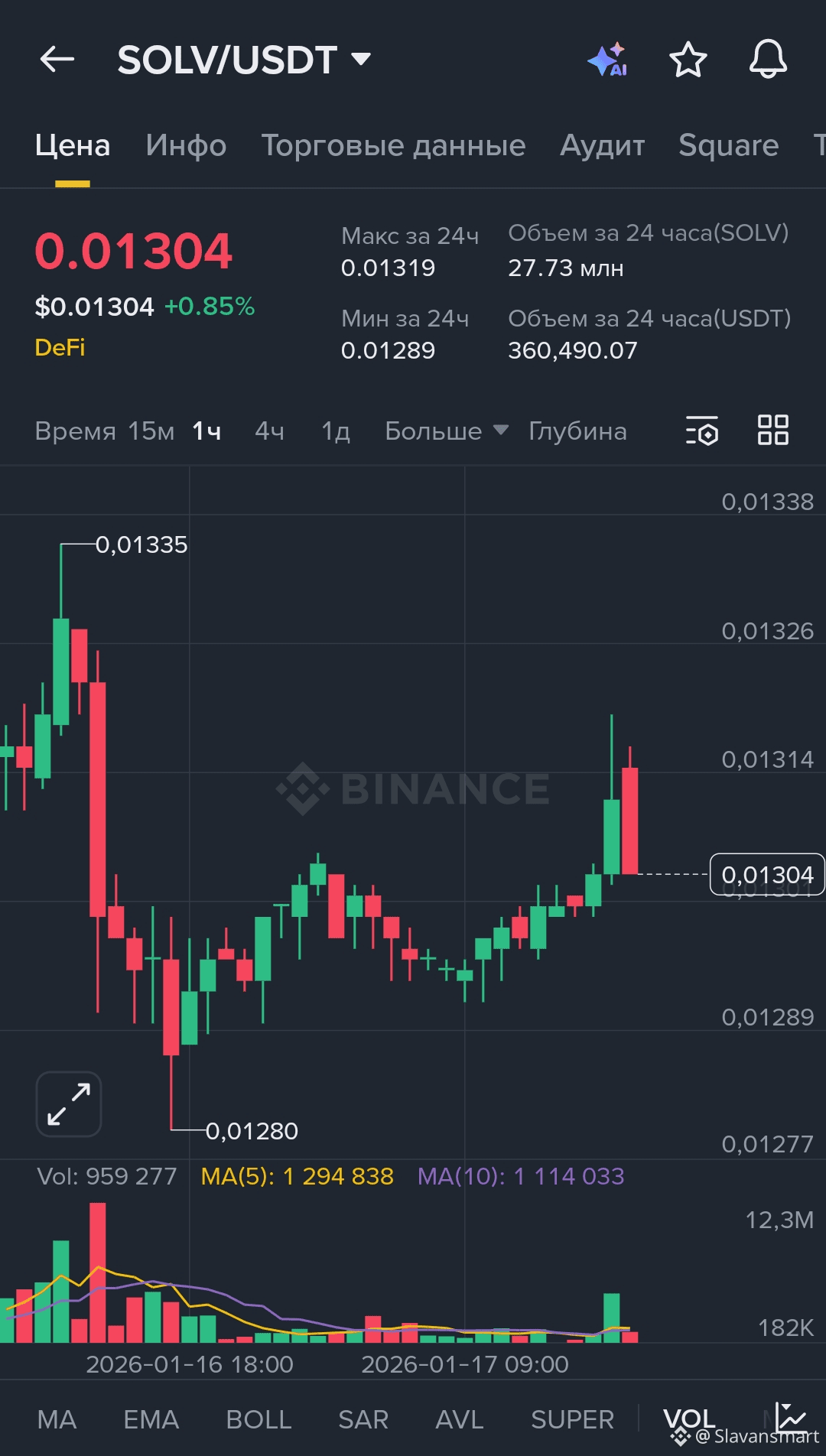 • $SOLV торгуется примерно ≈ 0.0131💲 (данные рынка в реальном времени)