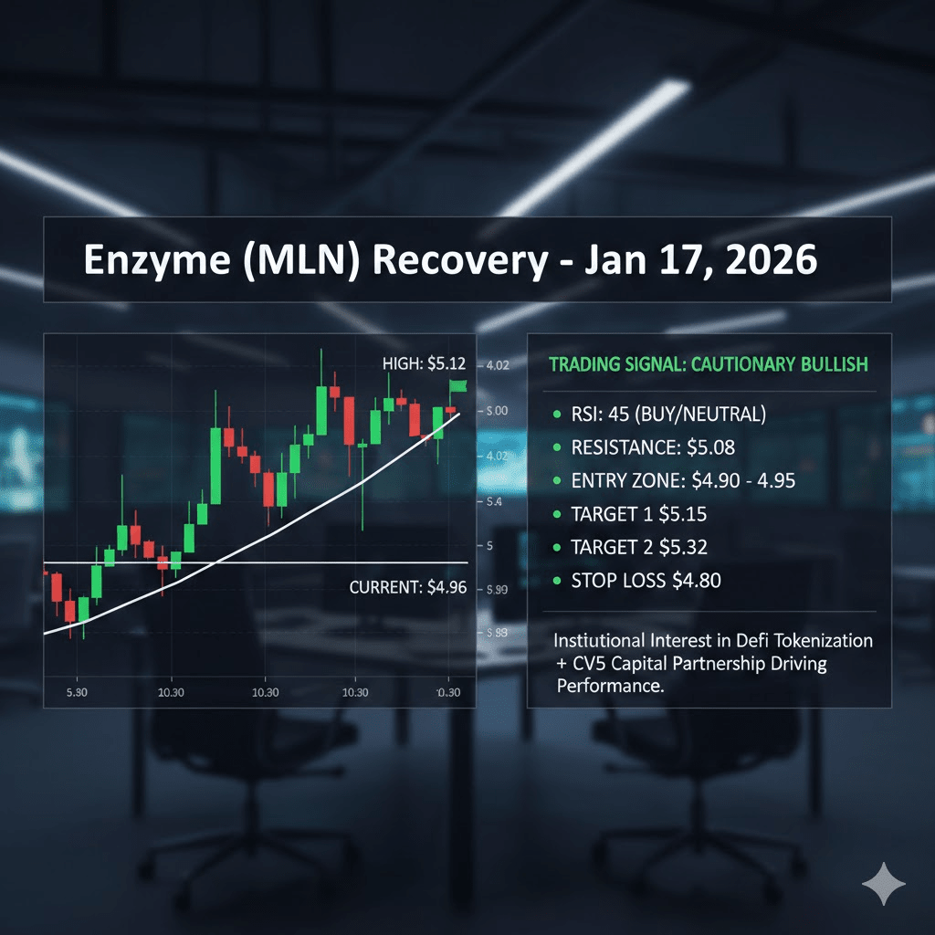 Dziś, 17 stycznia 2026 roku, moneta Enzyme (MLN) pokazuje skromne oznaki odbicia po okresie konsolidacji. Wydajność tokena jest obecnie napędzana przez instytucjonalne zainteresowanie tokenizacją DeFi oraz partnerstwo z CV5 Capital.