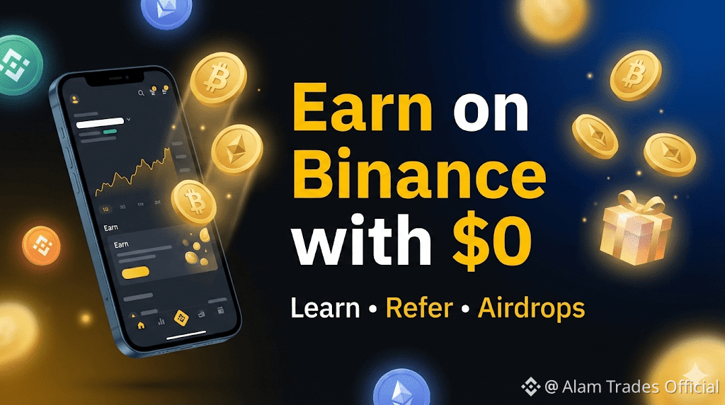 Start earning on Binance with $0 learn, refer, and grab free crypto today 🚀💰
