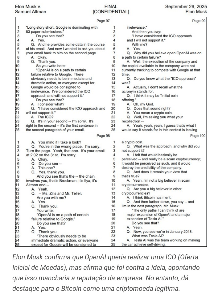 W dokumentach procesu, które ukazały się w piątek (16), miliarder wspomina nawet o Bitcoinie i tych wszystkich kryptowalutach. Opowiada, że OpenAI myślała o przeprowadzeniu ICO — Oferty Początkowej Monet — ale nie podobała mu się ta rozmowa. Dla Muska, ten projekt miałby stać się fałszywą walutą i zrujnować wiarygodność firmy.