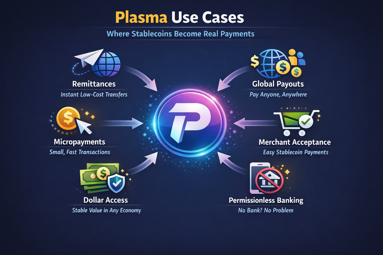 Przypadki użycia Plasma nie są spekulacyjne. To codzienne problemy finansowe - rozwiązane przez sprawienie, że stabilne monety działają jak prawdziwe pieniądze.