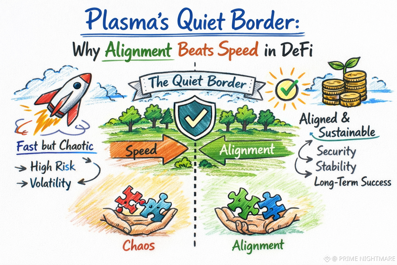 In DeFi, moving fast is often commend, but speed does not always mean progress. Many protocols rush to launch features, push aggressive motives, and chase attention. Plasma is taking a different path. Instead of accelerating at all costs, it is focused on alignment, and that choice gives @Plasma a quiet but powerful advantage.