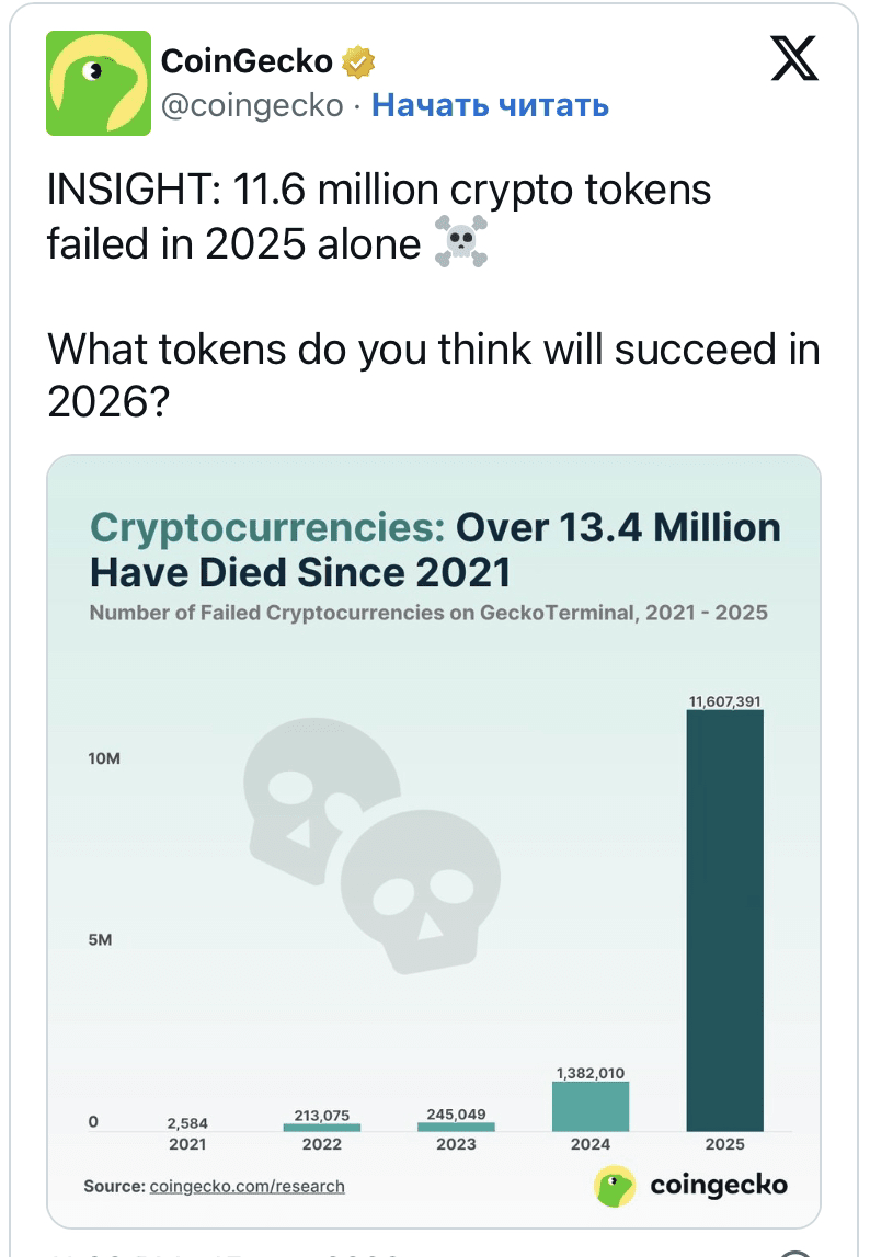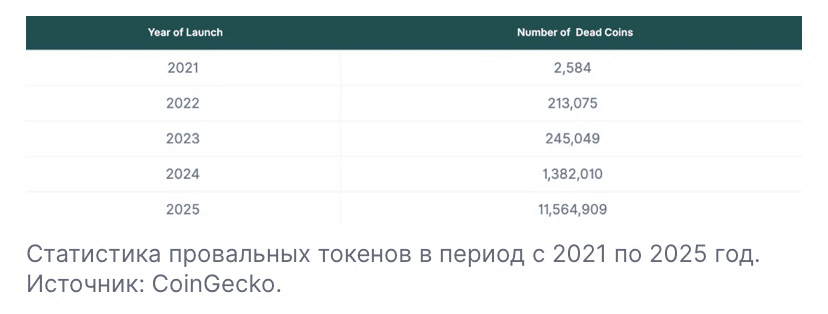 W ciągu minionego roku niepowodzeniem zakończyło się ponad 11,6 mln tokenów. Analitycy CoinGecko powiązali rekordowy poziom „śmiertelności” z zmiennością i upadkiem sektora memecoinów.