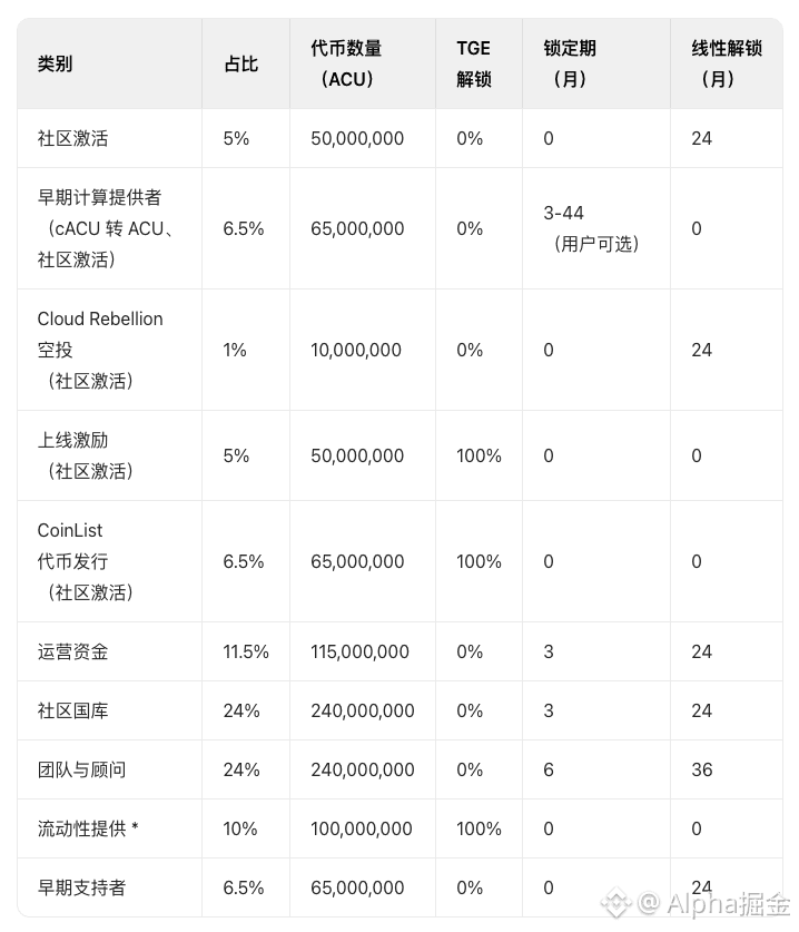 📍初始流通: 215,000,000 ACU (21.5%)