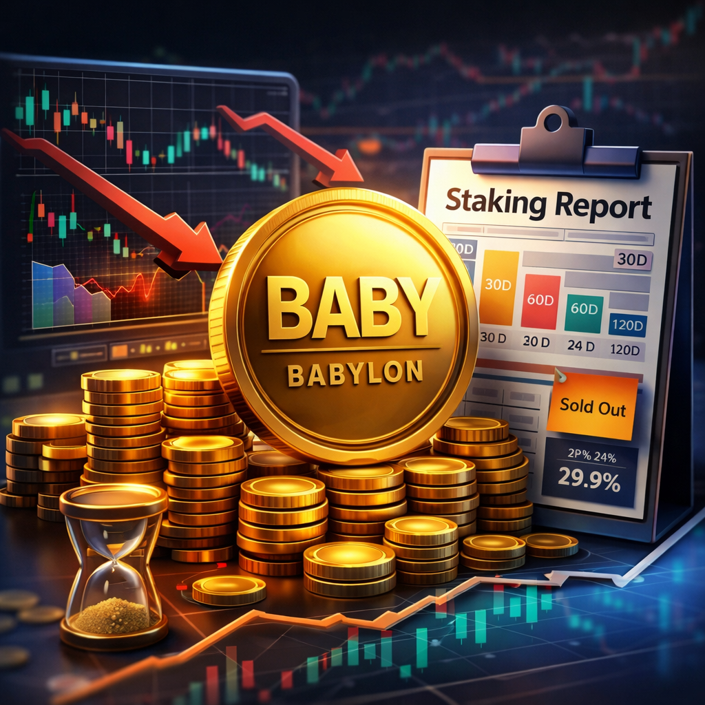 Na chwilę obecną stałe produkty stakowania BABY z wysokimi APR są całkowicie wyprzedane. Oznacza to dwie ważne rzeczy. Po pierwsze, znaczna część podaży została tymczasowo wycofana z obiegu — posiadacze dobrowolnie zamrozili aktywa. Po drugie, codzienne naliczenia z tytułu stakowania tworzą naturalną presję ze strony sprzedających, którzy realizują otrzymane dywidendy.