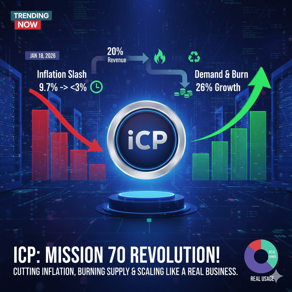 Misja 70 oznacza dojrzewającą gospodarkę kryptowalut. Traktuje ICP jak działającą firmę: Ograniczaj podaż, kultywuj rzeczywiste zapotrzebowanie i recyklinguj przychody. 📊✅