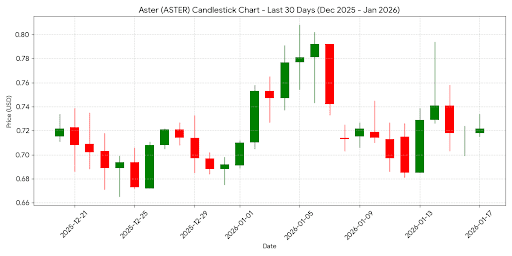 $ASTER Aster (ASTER) to token zdecentralizowanej giełdy (DEX), który zyskał znaczną popularność po rebrandingu z APX Finance i jego kolejnej liście na głównych giełdach, takich jak Binance. Poniżej znajduje się krótka analiza oraz wykres świecowy przedstawiający jego ruch cenowy w ciągu ostatnich 30 dni.