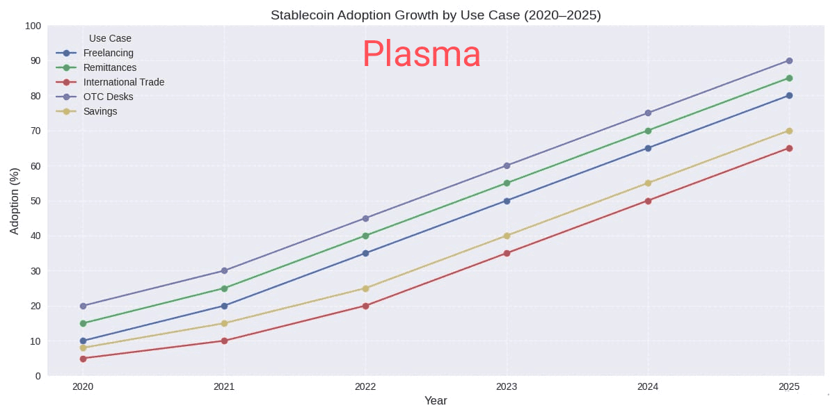 Widzisz to w freelancingu, przekazach pieniężnych, handlu międzynarodowym, biurach OTC i codziennych oszczędnościach w krajach z kruchymi lokalnymi walutami. Ludzie nie używają stablecoinów, ponieważ kochają blockchainy. Używają ich, ponieważ cyfrowe dolary poruszają się szybciej niż banki, sięgają dalej niż karty i działają, gdy tradycyjny system jest zamknięty.
