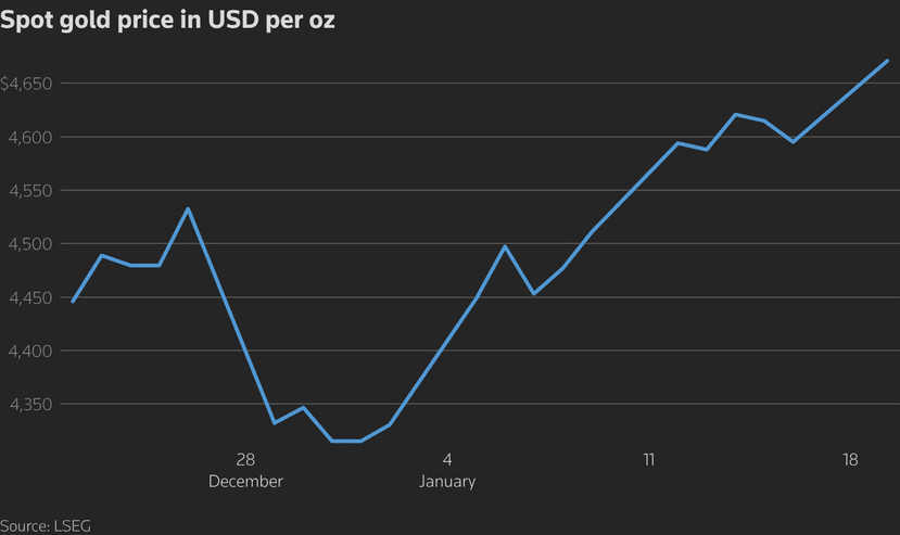 W tym samym czasie złoto i srebro osiągnęły nowe rekordowe poziomy w obliczu rosnących napięć geopolitycznych i narastającej niepewności makroekonomicznej. Złoto wzrosło do rekordu 4 689,39 dolarów za uncję, podczas gdy srebro osiągnęło 94,08 dolarów, co podkreśla wyraźny zwrot w kierunku aktywów uważanych za bezpieczne przystanie.