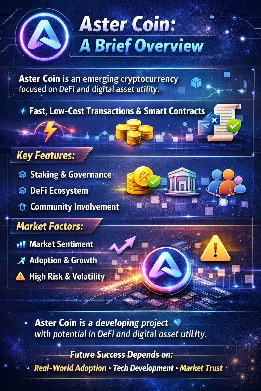 Like many new crypto projects, Aster Coin’s value is influenced by market sentiment, adoption rate, and overall crypto market conditions. While it shows growth potential, it also carries risks typical of early-stage digital assets. Investors are advised to conduct their own research, monitor project updates, and manage risk carefully.