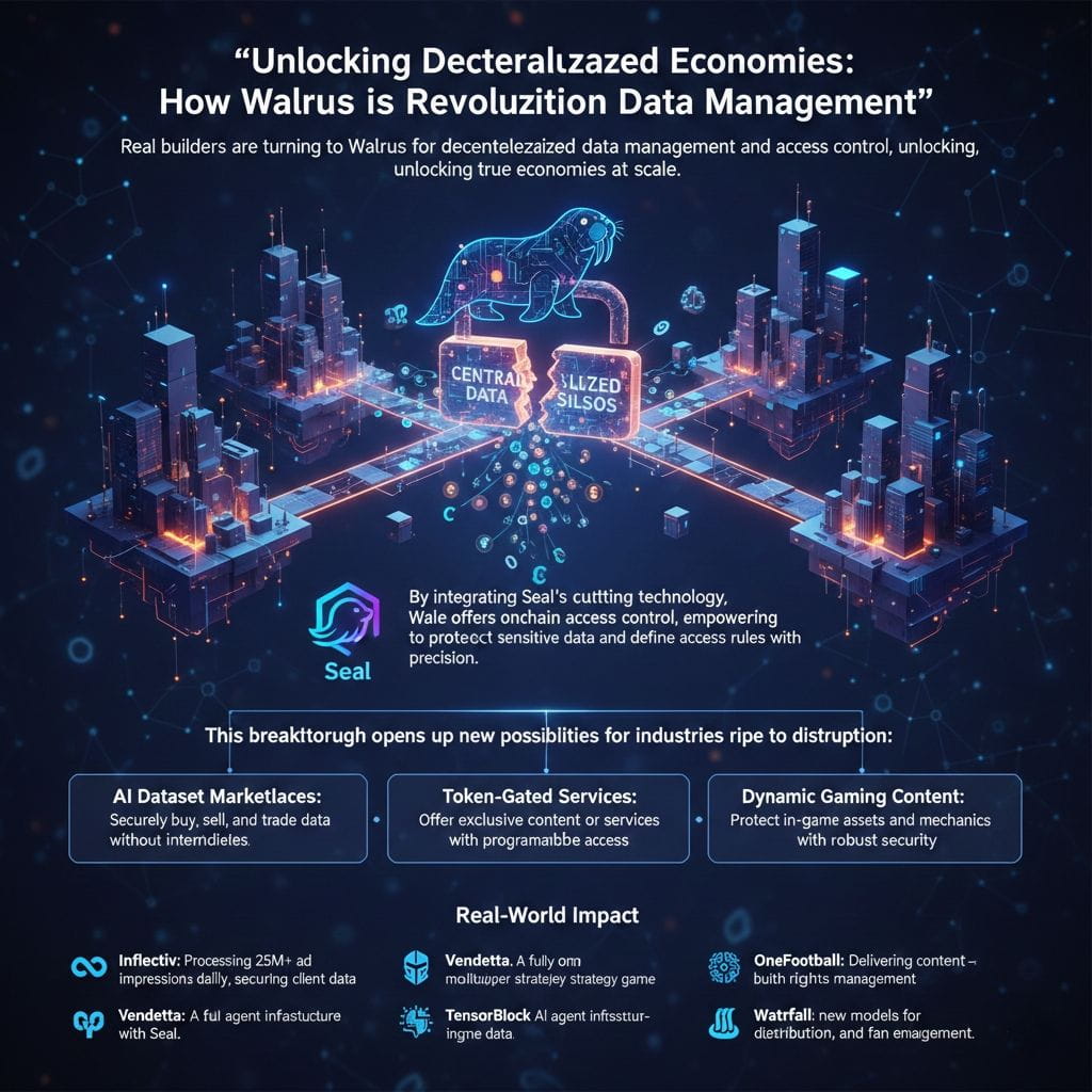 Real builders are turning to #walrus for decentralized data management and access control, unlocking true economies at scale. By integrating Seal's cutting-edge technology, Walrus offers onchain access control, empowering developers to protect sensitive data and define access rules with precision.