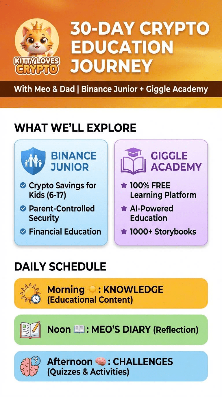 #BinanceJunior #GiggleAcademy #KittyLovesCrypto #MeosBinanceJourney #CryptoEducation #30DayChallenge #BinanceSquare #FinancialLiteracy #ParentingTips #DCA #BNB