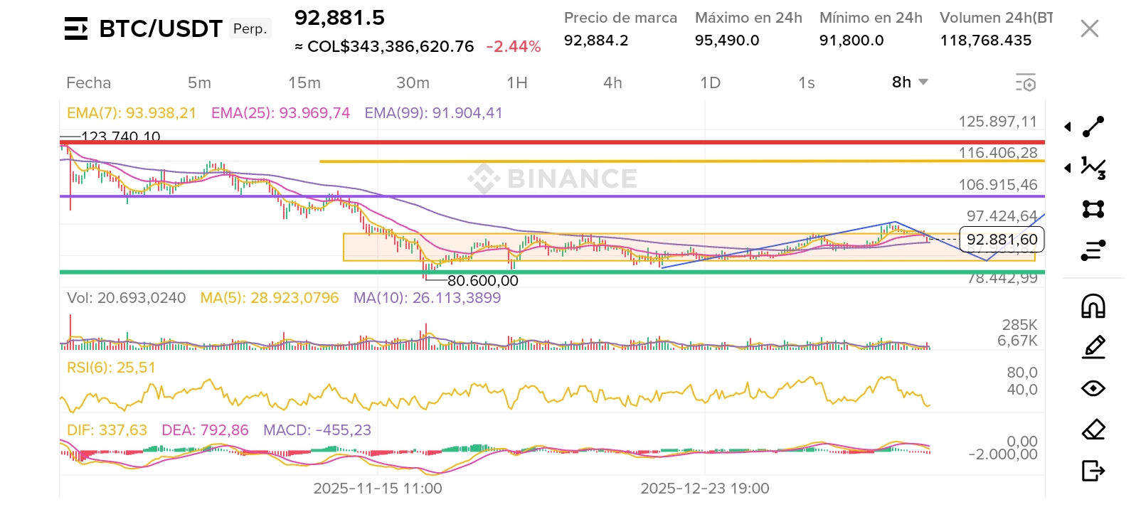 Cześć, społeczności Binance Square! 🚀 Jestem @ANFELIA_INVESTMENT , z Medellín (Kolumbia), a dziś chcę podzielić się z wami edukacyjną analizą na temat Bitcoina opartą na tych niedawnych wykresach BTC/USDT na Binance. Jesteśmy w styczniu 2026 roku, a cena BTC oscyluje wokół 92 000 - 93 000 USD, z korektą na poziomie -2,4% w ciągu ostatnich 24 godzin. Ale nie martwcie się! To może być okazja do zakupu na rynku byka w długim okresie. Rozłóżmy to krok po kroku, jakby to była szybka lekcja, abyście zrozumieli i zachęcili się do inwestowania w inteligentny sposób, nawet zaczynając od tylko 100 USD. 📈