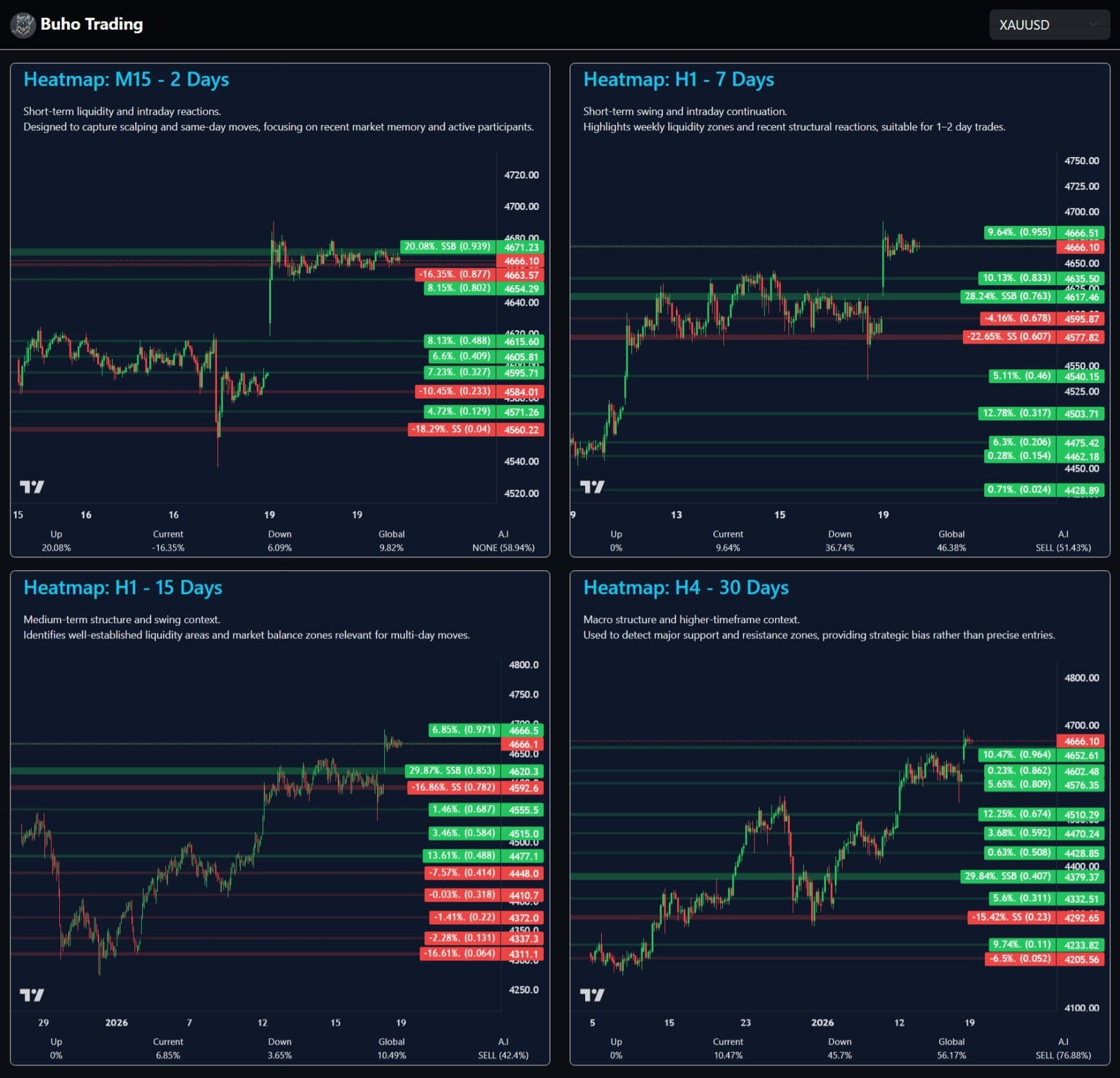 Na mapie cieplnej z 2 dni, złoto znajduje się obecnie w ograniczonym bokiem, operując w zakresie między $4,666.71 a $4,671.23.