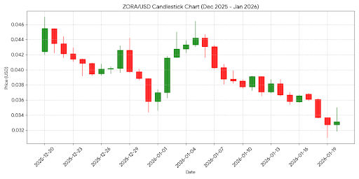 #zoraudst Po eksplozywnej fali wzrostowej, osiągającej rekordowy poziom w wysokości około \$0.15 - \$0.22 w połowie 2025 roku, token napotkał znaczny nacisk sprzedażowy. Recentna akcja cenowa w styczniu 2026 roku pokazuje fazę konsolidacji wokół poziomu \$0.033, wpływaną przez szersze trendy rynkowe i zaplanowane odblokowania tokenów.