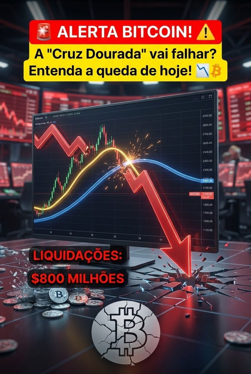 [BITCOIN EM RISCO]: No mundo cripto, o clima é de tensão. O Bitcoin recuou para a casa dos 93 mil dólares, liquidando mais de 800 milhões de dólares em apostas de alta. A famosa "Cruz Dourada" — aquele sinal gráfico que indica uma explosão de preços — está em risco! Se o BTC cair abaixo de 91 mil, a tendência de alta pode ser cancelada. 📉⚠️