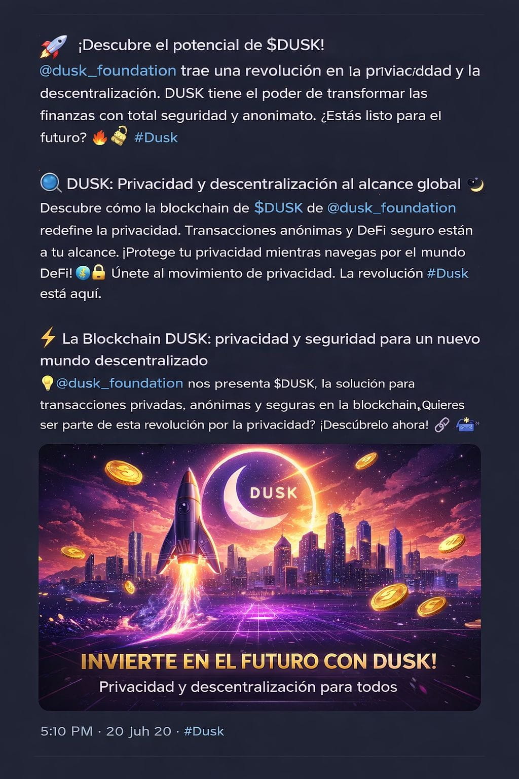 Si buscas una forma inteligente de ganar criptomonedas mientras aprendes y creces como creador, esta oportunidad con DUSK es una de las más interesantes del momento.