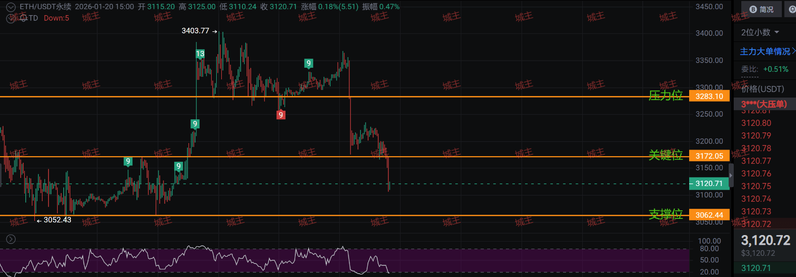 Gracze trzymający ETH: nie ma powodu do paniki, ustaw „radar ostrzegawczy” przy 3062, a gdy tylko zostanie osiągnięty, natychmiast składaj zlecenia zwiększenia pozycji;