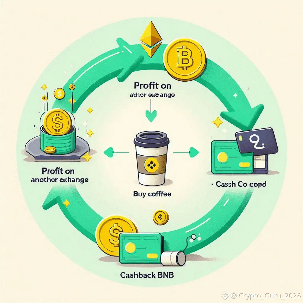 · The Hack: When you make a profitable trade on another exchange (say, you buy ETH on Kraken), immediately use your Binance Card to make a daily purchase (coffee, groceries, bill pay). You get 1-8% cashback in BNB on that spend.