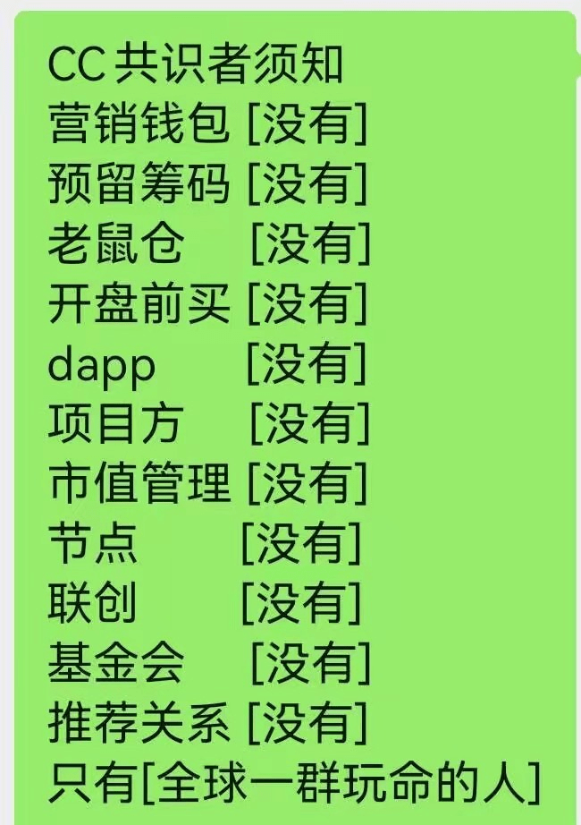 $CC nie ma żadnych pozycji szczurów ani zarezerwowanych żetonów i stworzy możliwości redystrybucji bogactwa dla setek milionów najniższych graczy. Spełni marzenia wszystkich najniższych graczy, a przyszłość jest obiecująca.