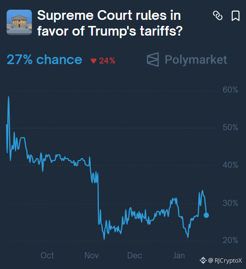 The U.S. Supreme Court is set to rule today on President Trump’s tariffs, and the stakes couldn’t be higher. Prediction markets are flashing a warning signal — Polymarket shows a 73% chance the tariffs are ruled illegal 😳
