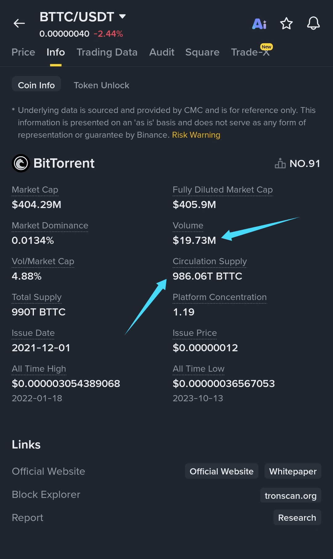 $BTTC ma niezwykle dużą podaż w obiegu (tryliony tokenów).
