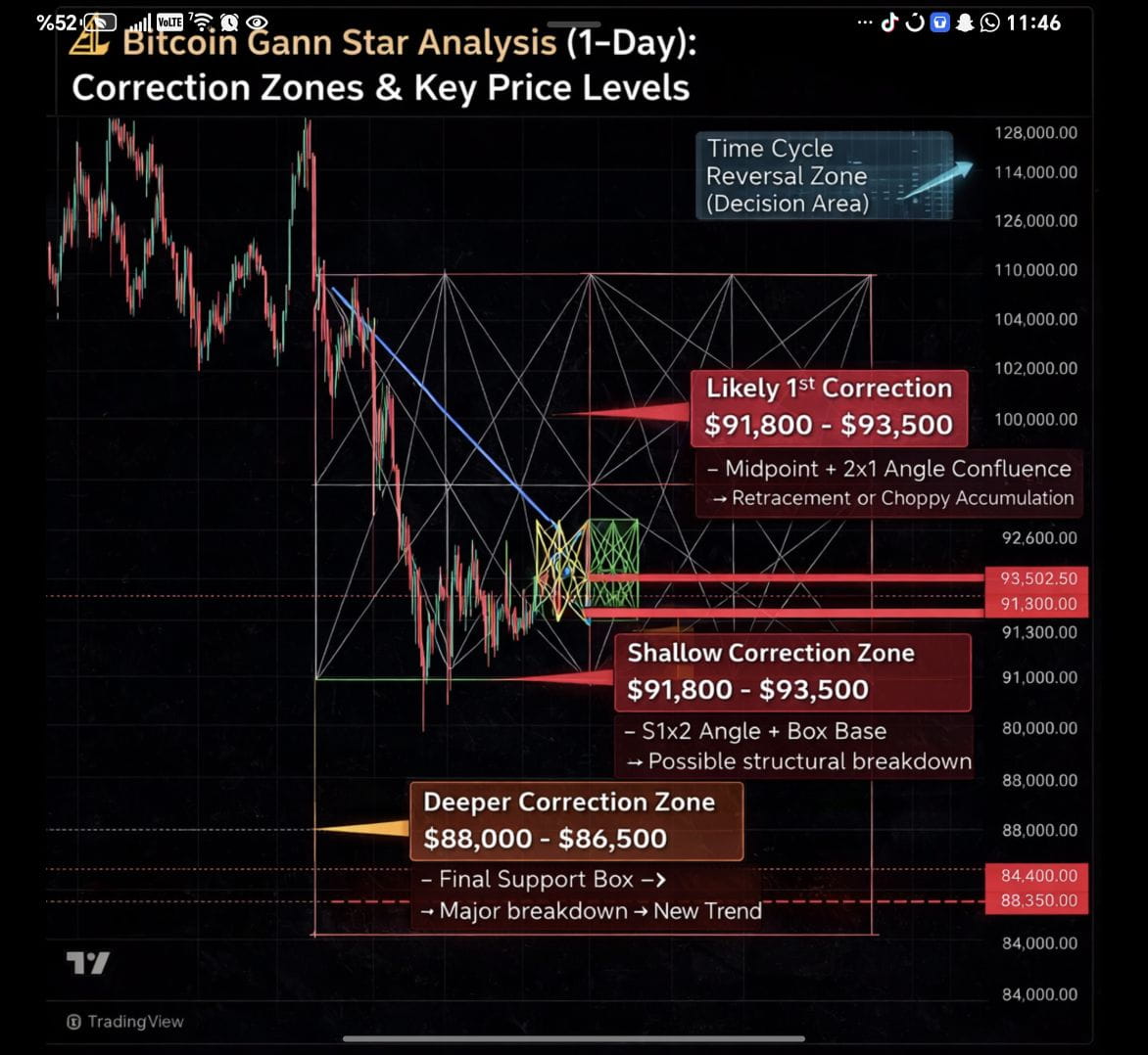 🎯 Oczekiwane strefy korekty według gwiazdy Gana