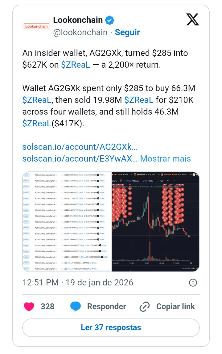 Jakiś facet udający tradera zdobył tylko około 285 USD na tej memecoin Zreal i, w mgnieniu oka, pieniądze zamieniły się w fortunę 627 tysięcy USD. To był zysk zapierający dech w piersiach: ponad 219.900%! Grupa społeczności już przysiągła, że ten gość to „sniper” — ten, który czai się, znając projekt przed wszystkimi, i wchodzi na rynek, kupując od razu w pierwszych sekundach po uruchomieniu.