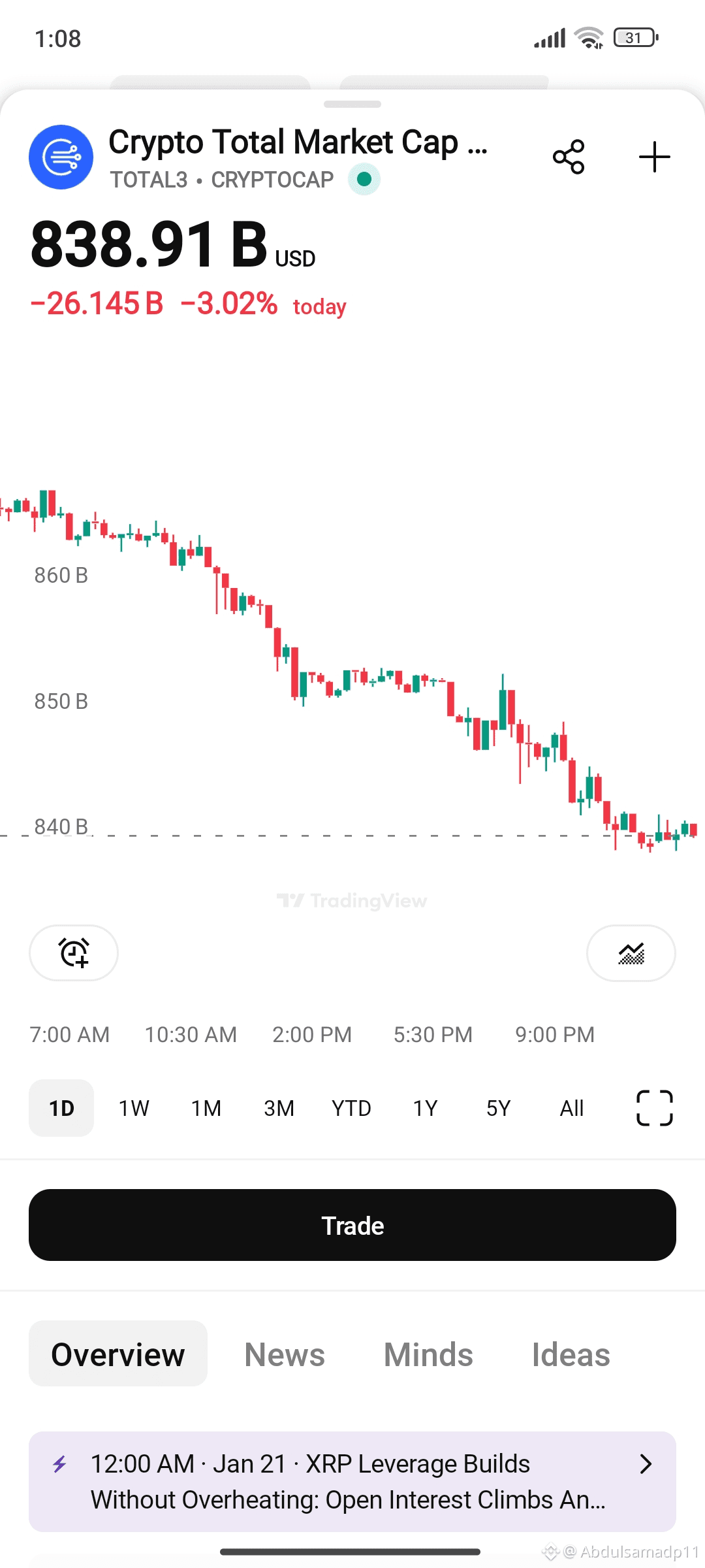 🔻 Total Market Cap Is Dropping Hard Total crypto market cap is bleeding 📉🩸