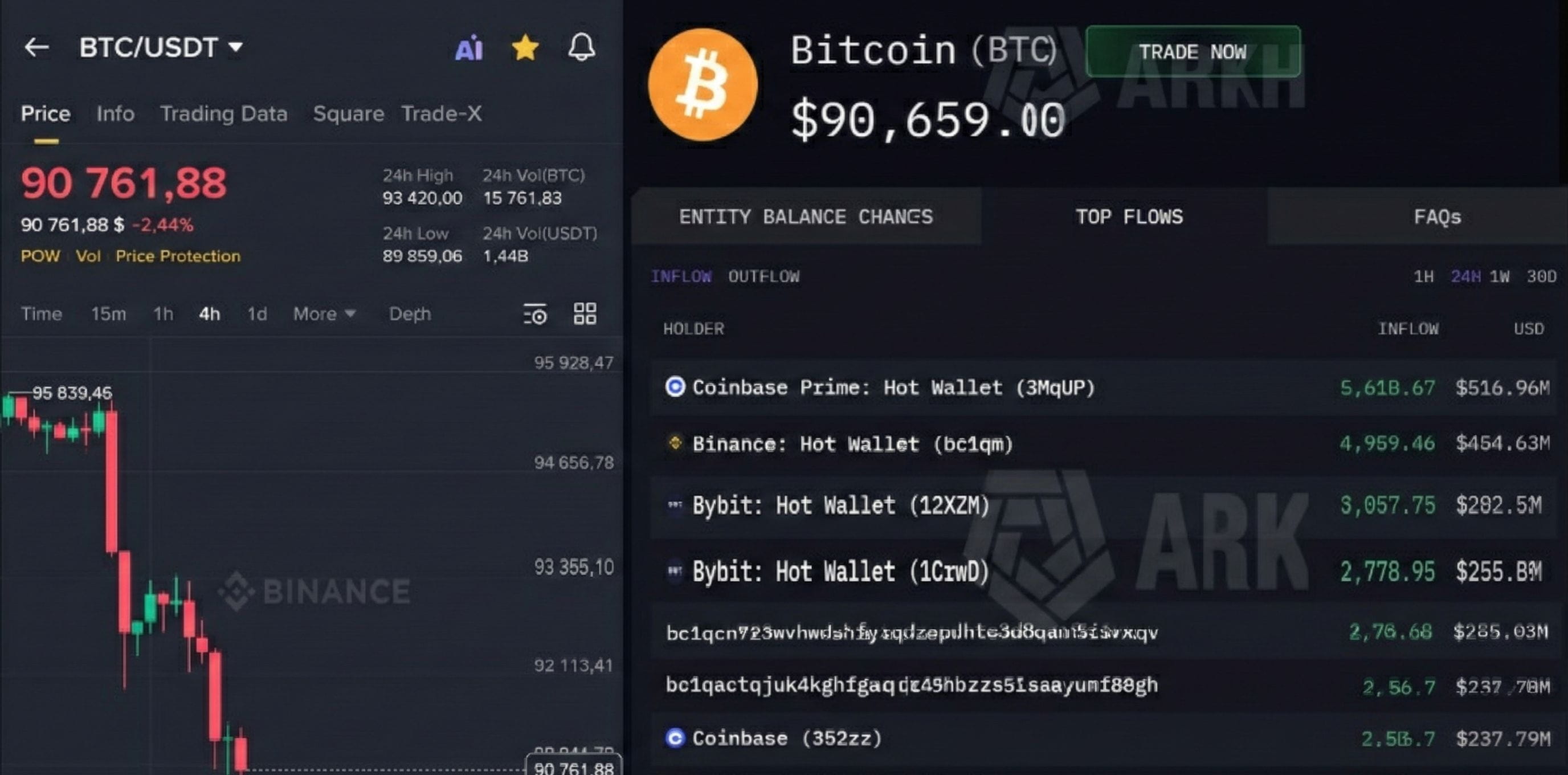 In the last 4 hours, over $2.5 BILLION in Bitcoin moved into Coinbase and Binance hot wallets (See Image on Right 👉).