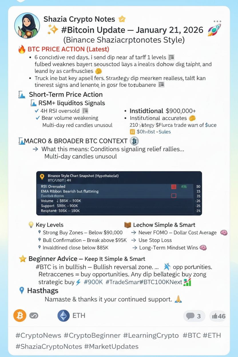 ✨ Summary — Shaziacryptonotes Style #BTC is in a bullish reversal zone as oversold RSI + weakening bearish pressure come together. 💥 Retracements = buy opportunities. Any dip below $90K = ⚡ strong strategic buy zone for smart accumulation.