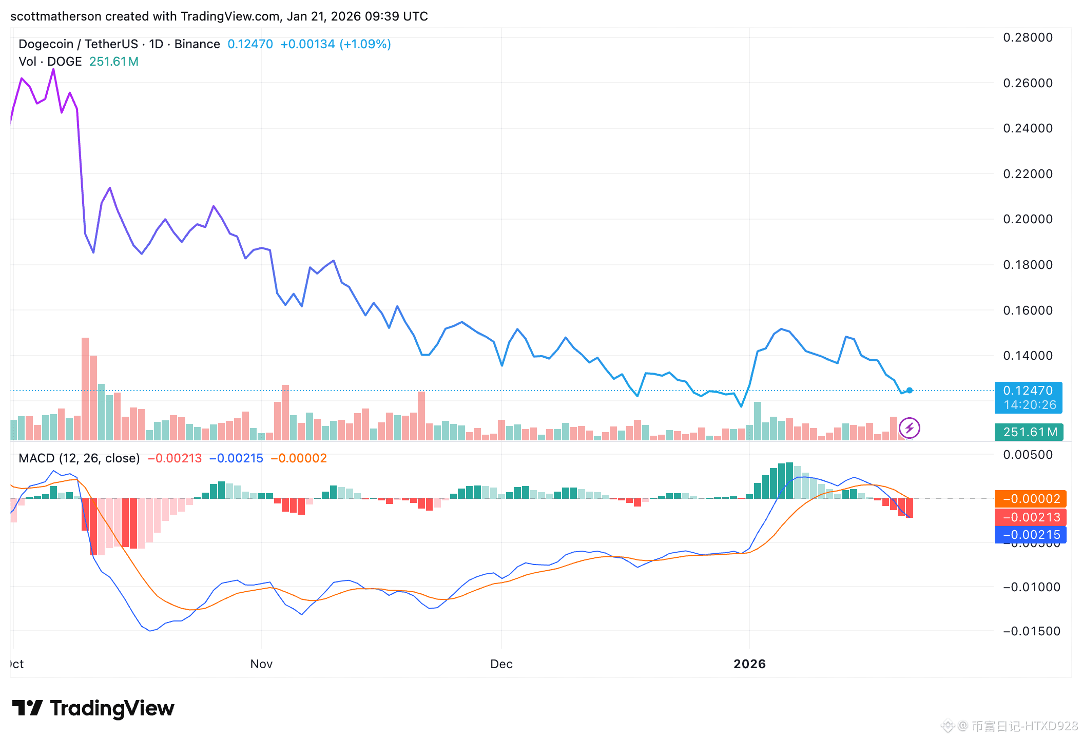 狗狗币处于高时间框架积累区