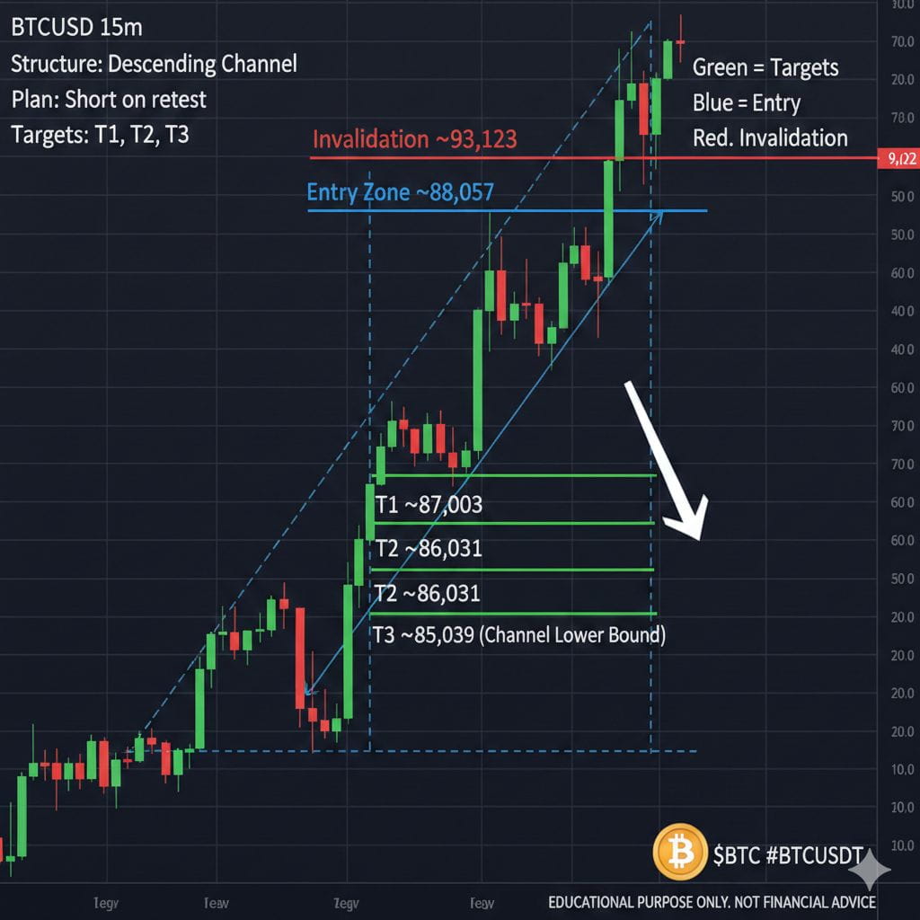 Entry Zone: ~$88,057 (Retest of the upper channel/Blue Line)
