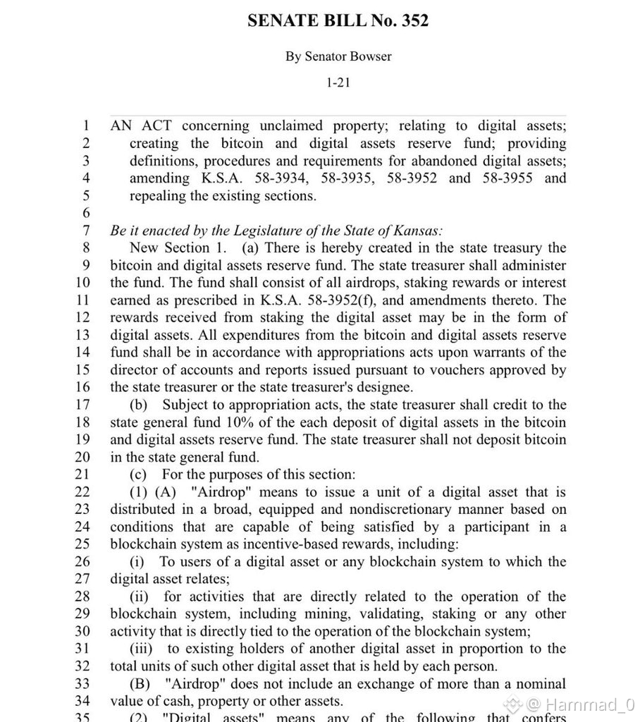 🇺🇸 U.S. State Kansas has introduced a bill to create a Bitcoin & crypto strategic reserve.