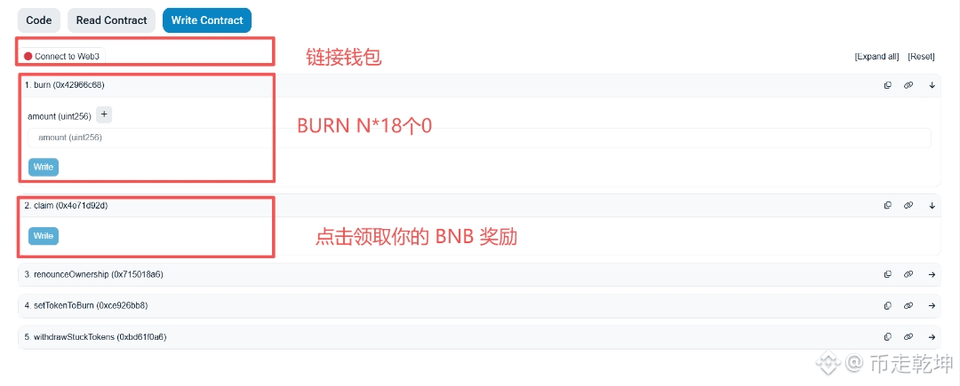 关于燃烧和领取 #BNB 奖励,除了通过 http://burn.ceo 官方 DAPP 外,你也可以通过 BSC 区块浏览器进行燃烧和领取 #BNB 操作!