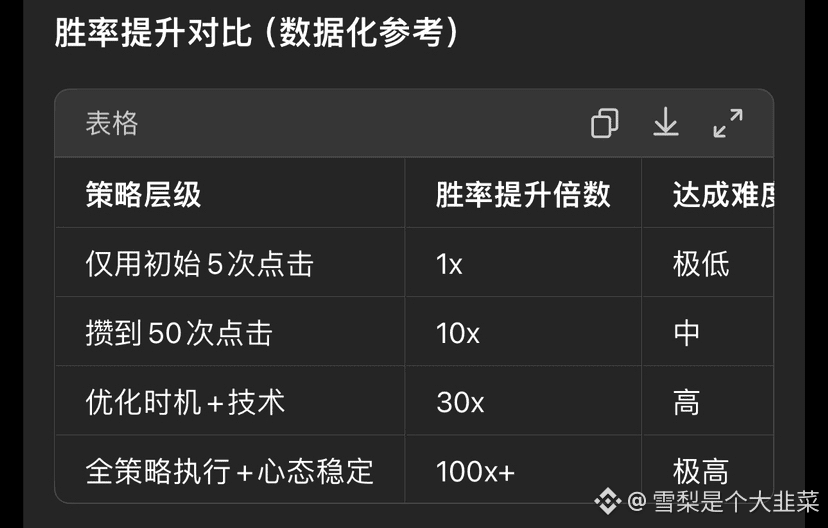 一、弹药储备:疯狂攒点击次数(基础胜率倍增器)
