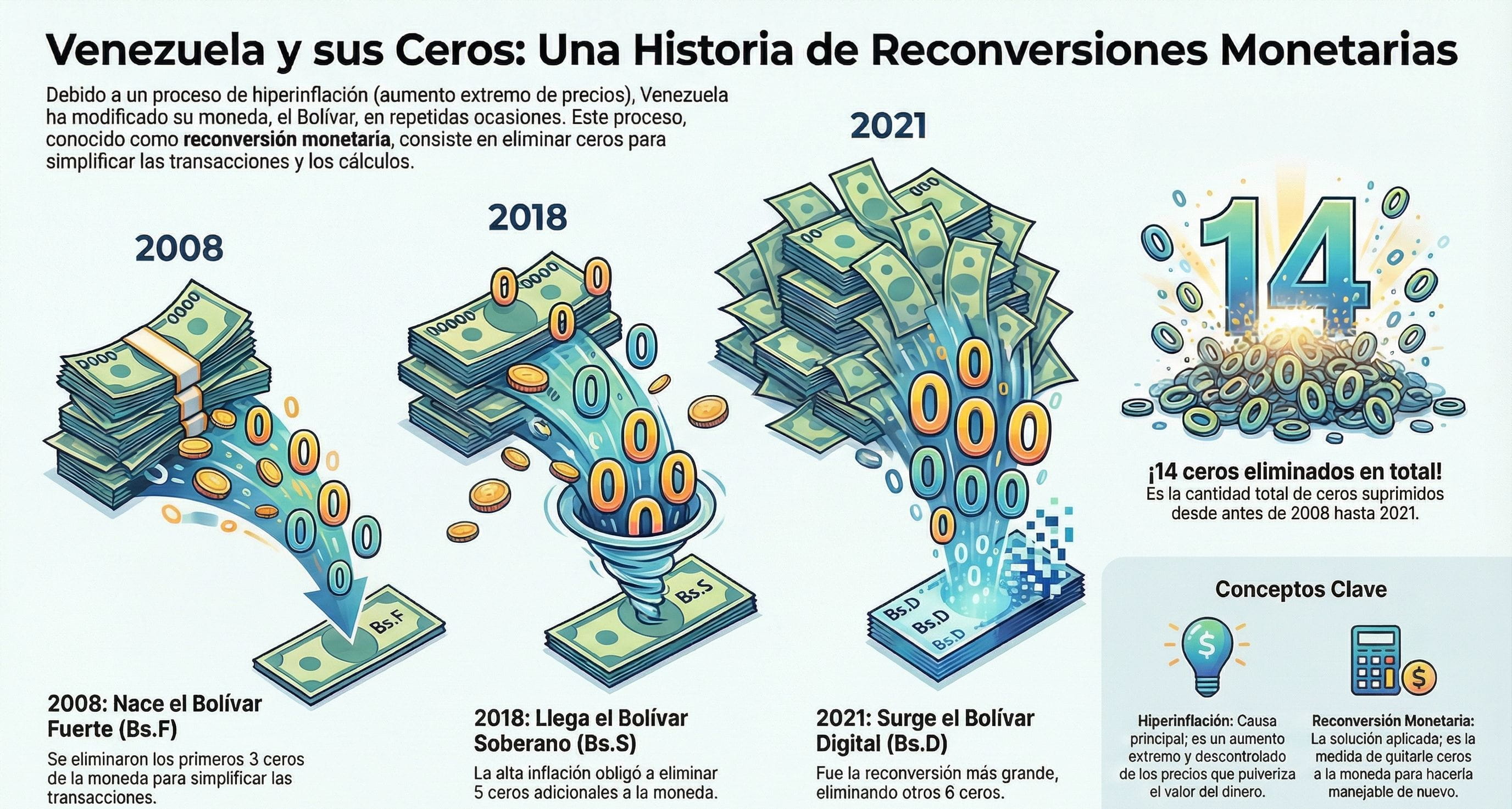 🤓 Dato curiosio: ¿Sabías que al último cambio (2021) el BCV lo llamó oficialmente "Reexpresión Monetaria" y no reconversión?. La diferencia técnica es que buscaba facilitar los sistemas contables que ya no aguantaban tantos dígitos, más que cambiar la moneda en si.