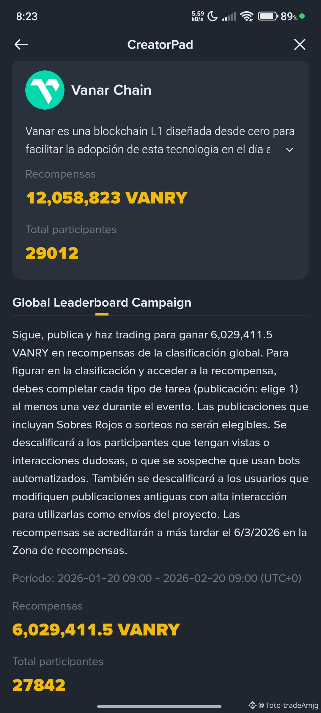 1- Recompensas masivas: Hay más de 12 millones de $VANRY en juego para la comunidad.🤑