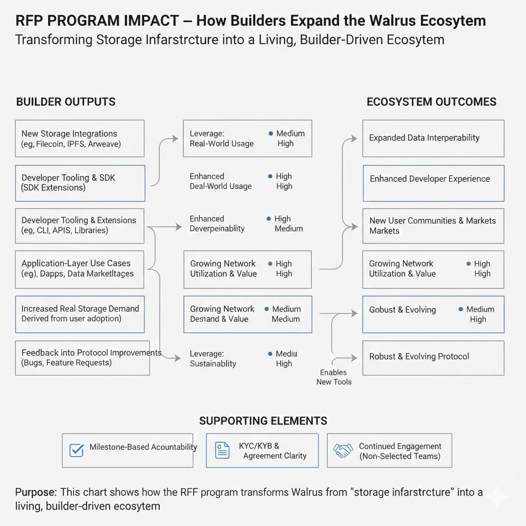 RFP ke through Walrus un proposals ko invite karta hai jo sirf ideas nahi, balki execution-ready thinking dikhate hain. Teams ko yeh explain karna hota hai ki unka solution kaunsa real problem solve karega, Walrus storage ka use kaise hoga, aur ecosystem ke long-term direction me kya value add hogi. Isse yeh ensure hota hai ki selected projects network ke liye noise nahi, balki signal ban kar aayein.