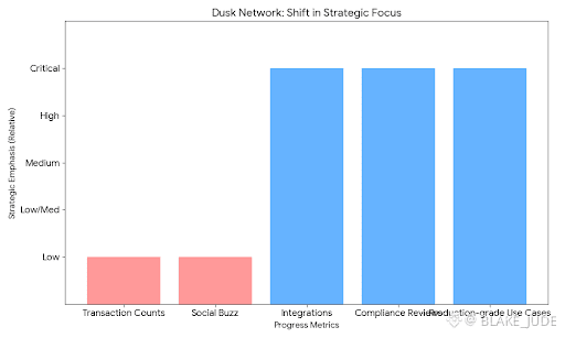 There is nothing flashy about this strategy. It does not lend itself to viral narratives or speculative mania. It requires patience, audits, and collaboration with entities that move carefully by necessity. That may be why Dusk feels less like a startup chasing relevance and more like infrastructure quietly taking shape. Its progress is measured not in transaction counts or social buzz, but in integrations, compliance reviews, and production-grade use cases.