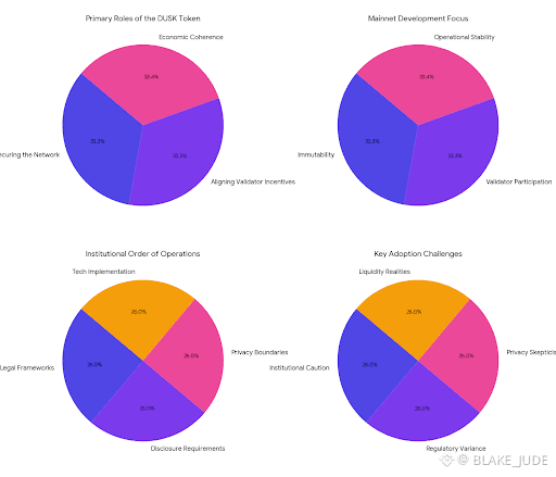 The DUSK token plays a quiet but essential role in this ecosystem. It secures the network aligns validator incentives and maintains economic coherence across layers. The emphasis has always been on reliability rather than hype. Mainnet progress focused on immutability validator participation and operational stability. The kinds of milestones that matter deeply to institutions and barely register elsewhere.