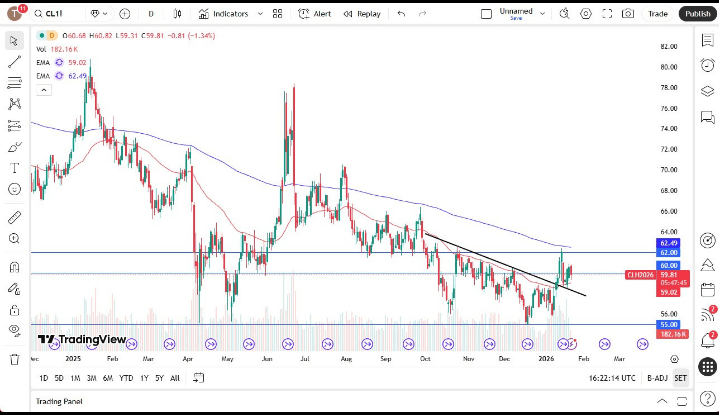 • Ropa odbiła po ostatnich nagłówkach ryzyka USA-Iran, a Brent i WTI zyskały, ponieważ rynki obawiają się niedoboru dostaw, jeśli napięcia wzrosną.