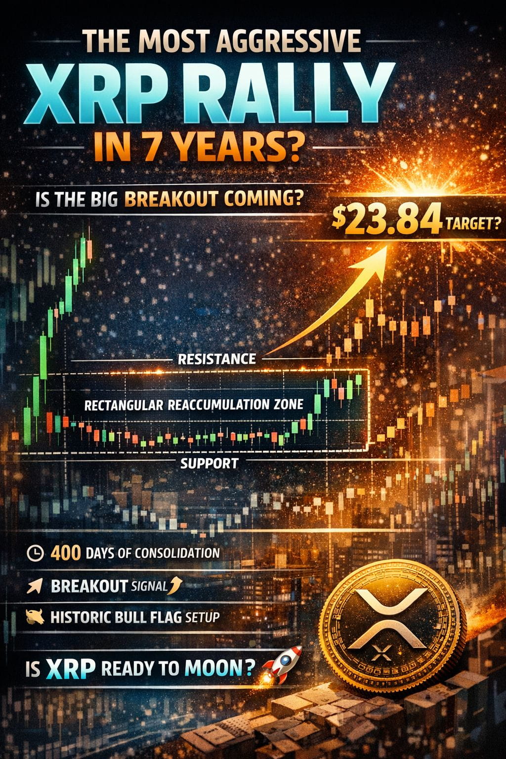 Przez ponad 400 dni XRP handlował w wyraźnie zdefiniowanej Strefie Reakumulacji Prostokątnej—struktura, która w analizie technicznej często poprzedza potężne ruchy wybicia.