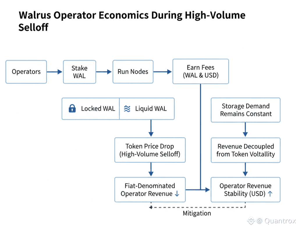 Walrus infrastructure keeps operating through all of this. Storage nodes don't care about volume patterns. They process availability challenges, serve data, collect fees. The operational layer is insulated from trading dynamics short-term. But operator economics depend on WAL maintaining some minimum value. If selling continues and volume keeps confirming downward momentum, eventually the token price affects whether running infrastructure makes financial sense.