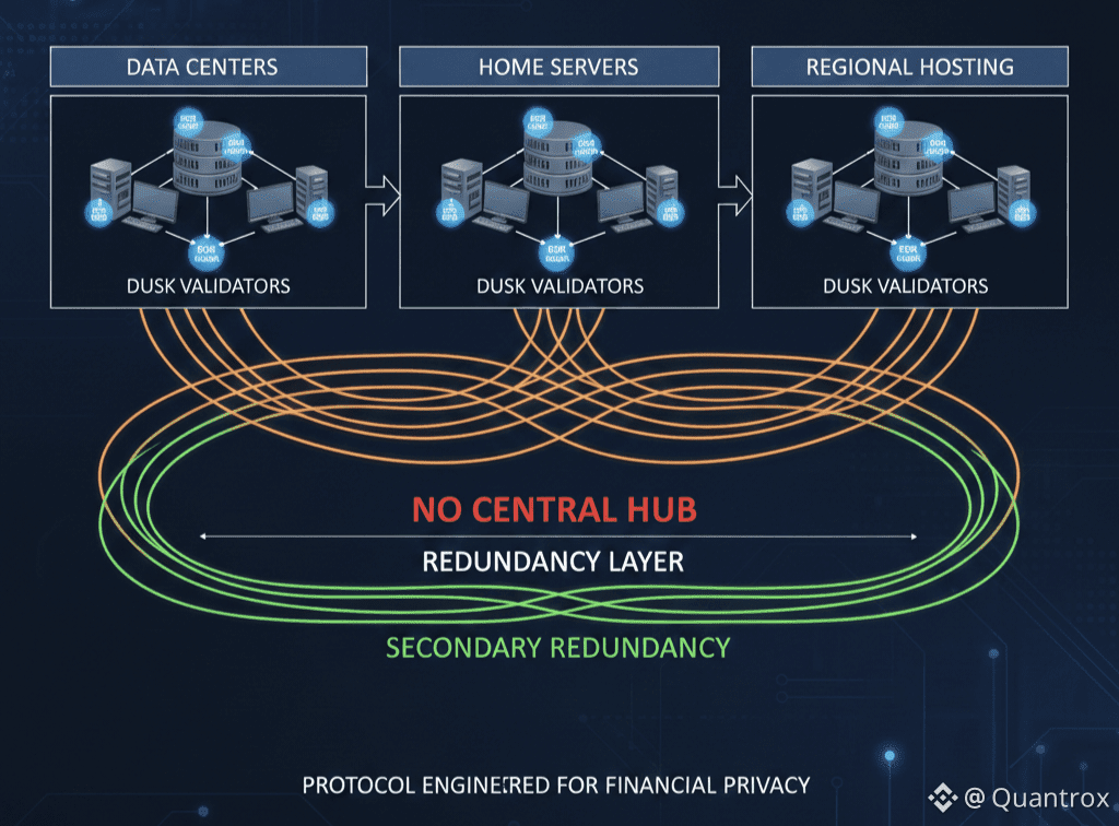 My gut says they're preparing for adversarial scenarios most validators don't think about. Government pressure on data centers. Provider-level censorship. Regional internet outages. The kind of failure modes that only matter if you believe Dusk will eventually process transactions that powerful entities might want to stop.