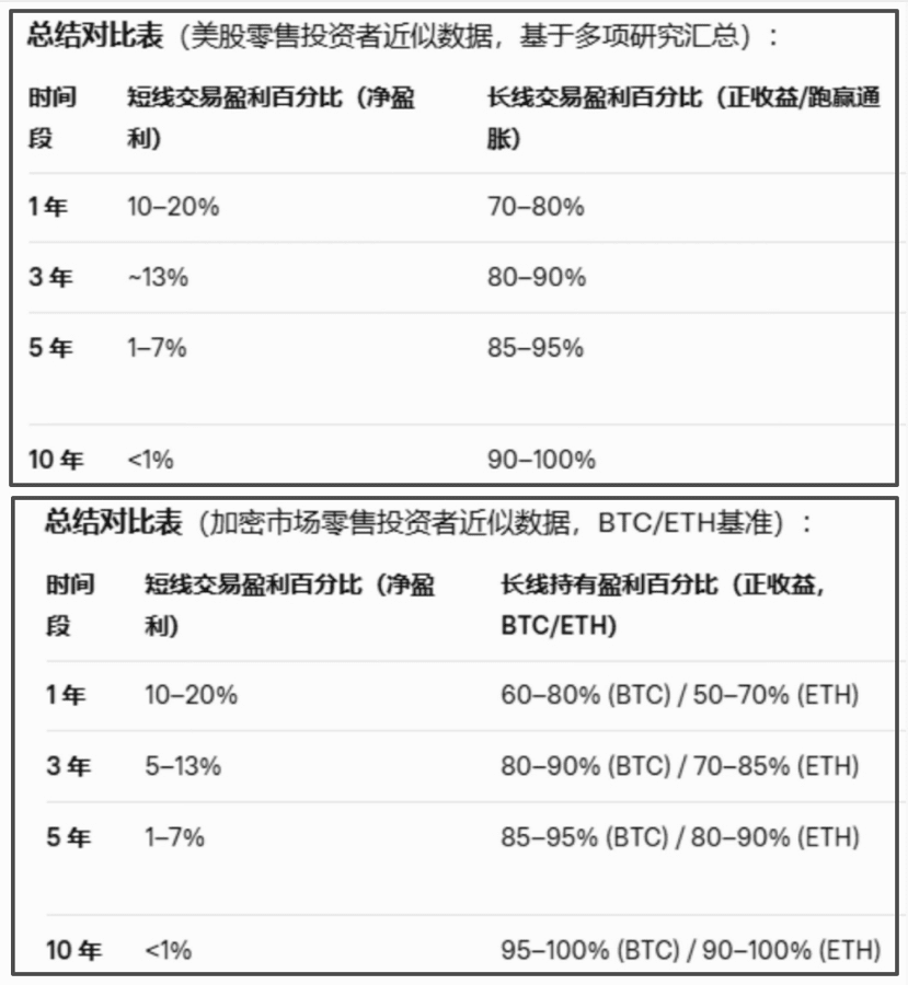 Najpierw przyjrzyjmy się danym dotyczącym handlu krótkoterminowego: wskaźnik zyskowności maleje z roku na rok. Krótkoterminowy handel z dźwignią na kontraktach ma bardzo niski wskaźnik sukcesu, przypominający bardziej ryzykowne hazardowanie. Jeśli chcesz uzyskać krótko terminowy zysk, lepiej w ogóle nie grać. W istocie konkurujesz z profesjonalnymi instytucjami, wielkimi graczami z Wall Street oraz zawodowymi traderami o ten bardzo niski wskaźnik sukcesu. Ich wiedza, umiejętności techniczne, kapitał oraz aspekt psychologiczny znacznie przewyższają nasze jako inwestorów detalicznych. Tego rodzaju wysoki ryzyko i niepewność w grze o sumie zerowej oznacza, że jeśli ktoś wygrywa, z pewnością ktoś inny przegrywa. Jeśli nie jesteś zawodowym traderem, nie masz systematycznej przewagi, ani nie dysponujesz bardzo silnymi umiejętnościami psychologicznymi i kontrolą ryzyka, długoterminowe trzymanie się krótkoterminowego handlu z dużą dźwignią najprawdopodobniej doprowadzi do ciągłego zmniejszania wartości aktywów.