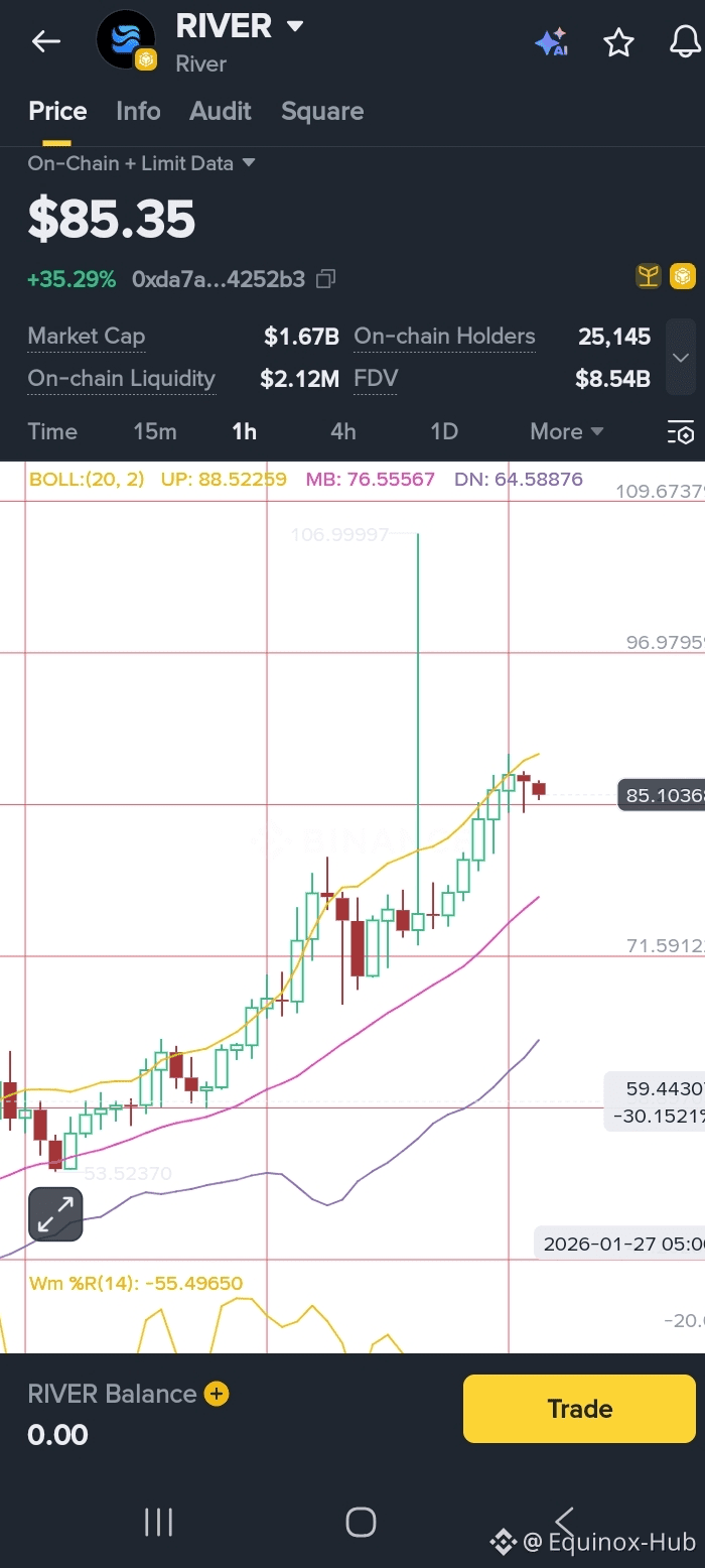 Technical Analysis of RIVER Token (Current Price: $85.35)