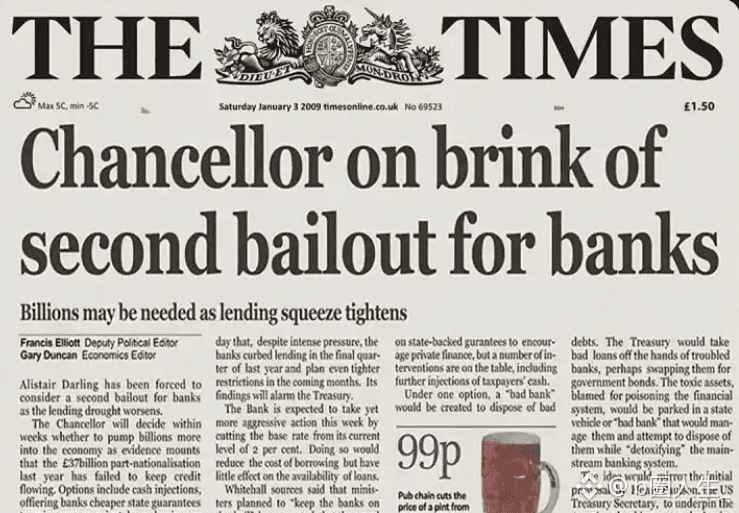 就在传统金融市场一片狼藉之际,比特币获得了密码学爱好者的关注。又经过了两个月的沉淀,中本聪在 2009 年 1 月 3 日正式上线比特币系统。