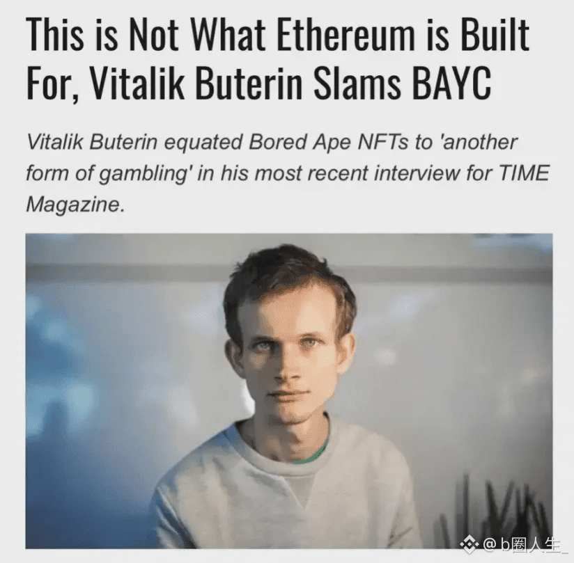 「This is Not What Ethereum is Built For!」这是 2022 年 3 月 Vitalik 在《时代周刊》采访中对 BAYC 的评价。即使是在百花齐放的以太坊生态,像 Yuga Las 这样的 NFT「IP 大厂」的发展也同样不被 OG 开发者们认可。