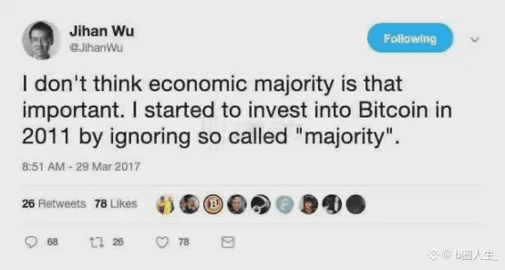 2017 年 3 月的一天,吴忌寒在推特写道,「我认为经济多数并不重要,我在 2011 年开始投资比特币就忽略了所谓的多数。」他决定另起炉灶,不再和 Bitcoin Core 玩了。